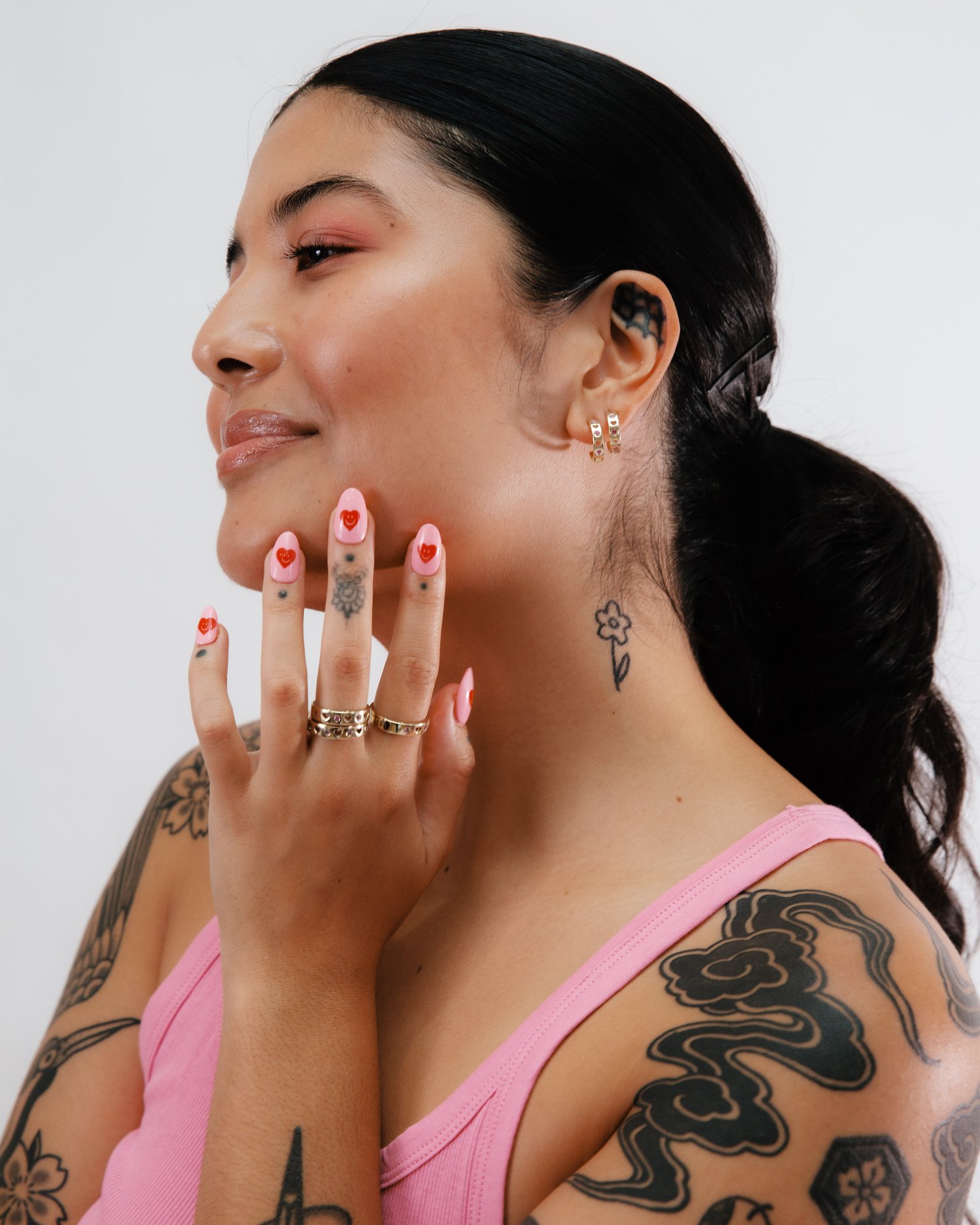 4 Pink Sapphires flush set in between love hearts cut out of the hoops.